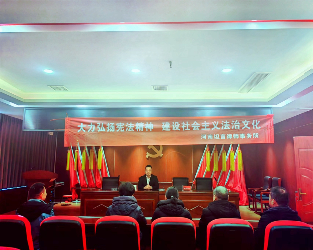 2023年12月03日,河南坦言律师事务所杨彩彩律师在岗赵村委会议室,为村委干部群众进行了“大力弘扬宪法精神 建设社会主义法治文化”专题讲座。增强广大人民群众的宪法意识,使更多人成为宪法的忠实崇尚者、自觉遵守者、坚定捍卫者。